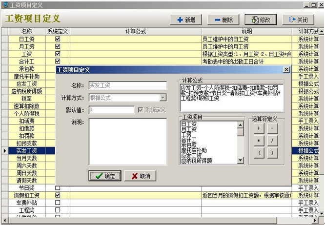 除此之外,還有根據(jù)系統(tǒng)中各業(yè)務(wù)單據(jù)自動(dòng)計(jì)算的扣工資預(yù)支、扣員工借款、扣罰款、員工請假單中請假扣工資等,還有需要手工添加的在工資項(xiàng)目定義中各種扣款、補(bǔ)助等。