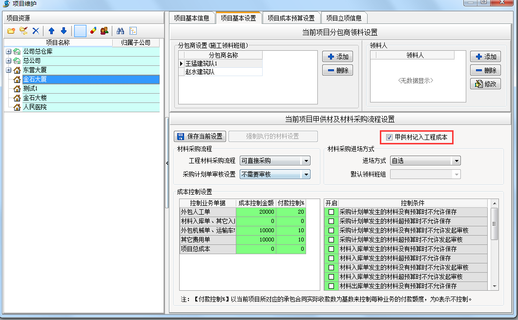 承包合同還可以對甲供材進(jìn)行控制。如下圖