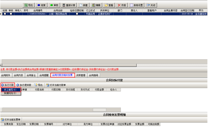 付款及發(fā)票可在“合同付款及相關發(fā)票”中查詢。如圖: