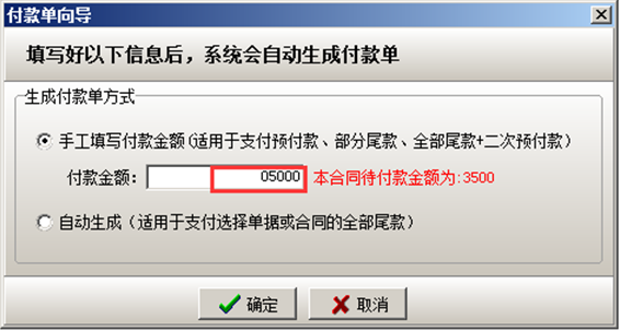 材料入庫完成之后,點擊“合同付款及相關發(fā)票”,點擊“執(zhí)行付款”(付材料款),輸入付款金額。如圖: