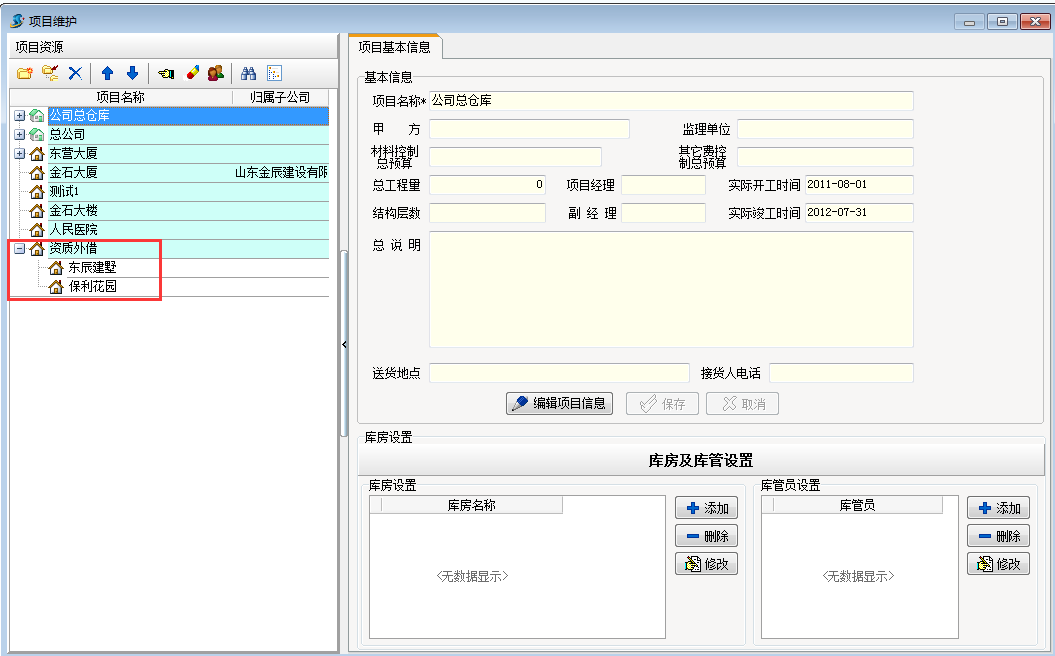 情況分析: 在工程項(xiàng)目資質(zhì)掛靠管理中由于本工程款資金流向是經(jīng)過我公司的,正規(guī)的管理辦法是在【項(xiàng)目維護(hù)】中建立一個項(xiàng)目來管理,如下圖: