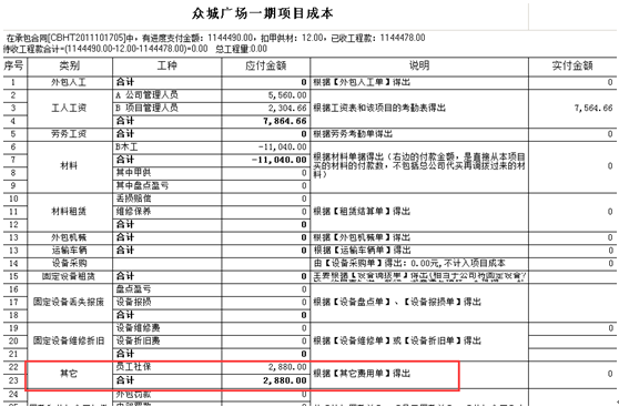 其他費用單添加完成并付款之后,該項的成本會一其他費用體現(xiàn)在項目成本中,如圖:
