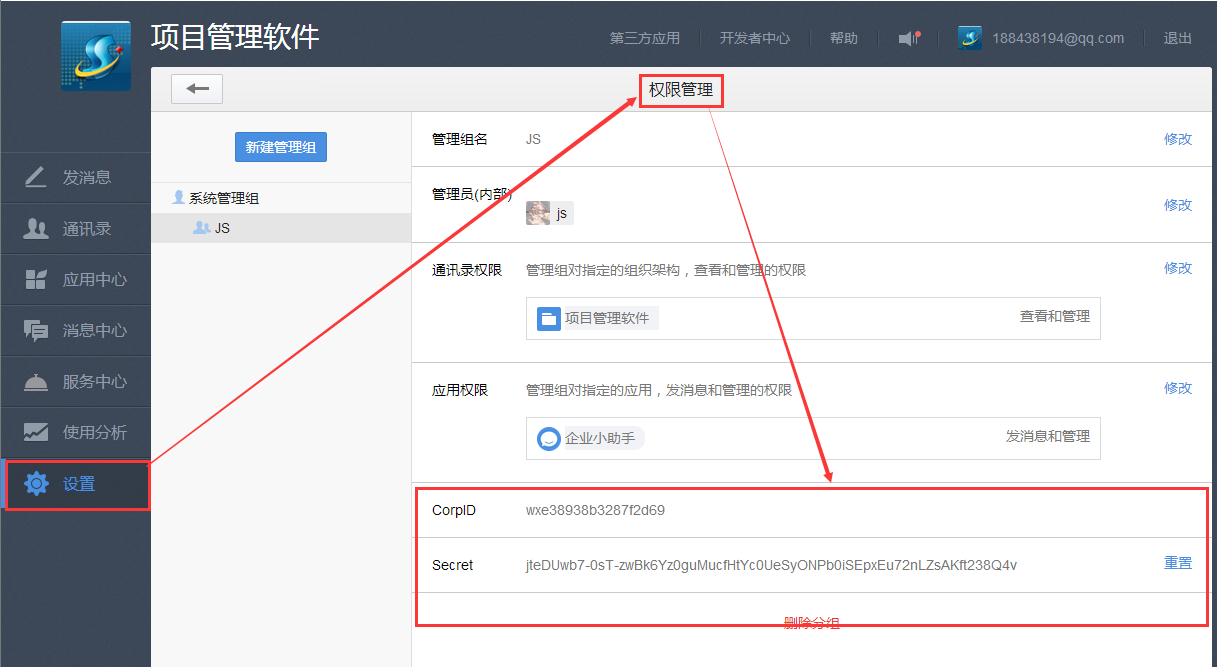 ⑴ corpid 和corpsecret獲取辦法如下圖: