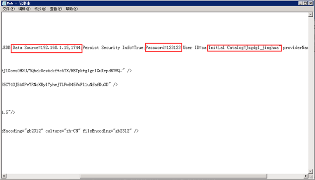 6. 設置web.conf 文件.IP地址、數(shù)據(jù)庫名稱、數(shù)據(jù)密碼、key字段等。如圖: