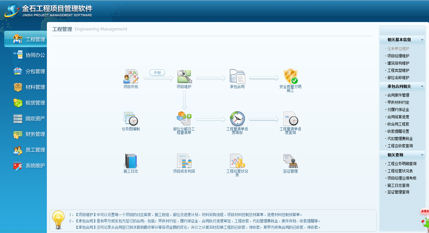 工程項目管理就是在一定的條件和基礎上,為達到一定的目標和取得一定的成效,而采用科學計劃和動態(tài)分析手段(可利用建筑工地管理系統(tǒng)),以盡可能小的投入而獲得盡可能大的效益。目前,許多大型工程項目具有工期緊張、技術復雜、規(guī)模巨大、交叉施工的特點,因此,現(xiàn)代工程項目中,如何利用建筑工地管理系統(tǒng)有效配置原料和人力資源、控制生產(chǎn)和施工過程,是工程項目管理亟須解決的問題。在建筑工地管理系統(tǒng)中管理過程中實現(xiàn)減少投資風險、細化管理過程、增加成本效益、加強信息溝通,客觀上要求工程項目管理人員提高管理水平、增加技術含量、增強競爭能力,有效運用各種知識和手段來控制項目的操作和運行過程。事實上,對工程項目的管理很大一部分也是對信息的管理,如何有效地掌握工程項目中各種有效信息,全面分析這些信息的特點,快速準確地對信息進行抽取、加工和分類,很大程度上依賴于信息管理的方式和手段。目前,許多大型項目紛紛采用信息化的管理手段,通過采用建筑工地管理系統(tǒng)來優(yōu)化項目管理過程,取得了良好的效果。