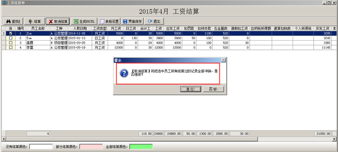注:如果員工的工資只做了部分結(jié)算,則會(huì)顯示對(duì)應(yīng)的“部分結(jié)算”的顏色。