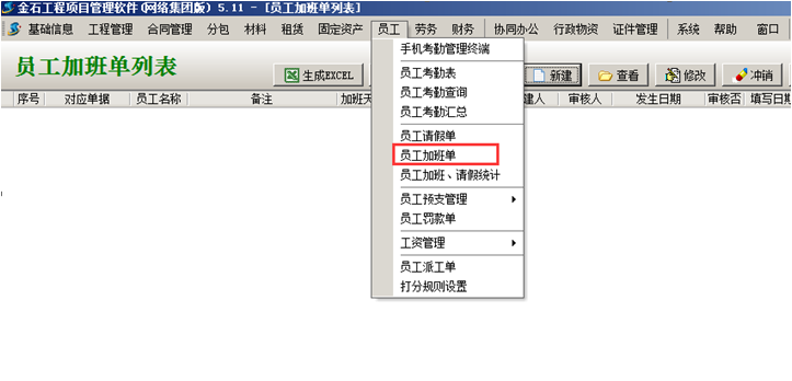 工程管理軟件中員工請(qǐng)假添加員工加班單,如圖: