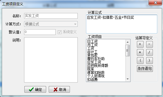 具體工資項(xiàng)目定義操作方法參見(jiàn)幫助文檔“如何根據(jù)自己的企業(yè)情況設(shè)置工資項(xiàng)目定義”