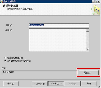 點擊【更改】按鈕,彈出如圖所示【計劃作業(yè)屬性】對話框。在該對話框里可以設(shè)置備份數(shù)據(jù)庫的時間及頻率,設(shè)置完畢后單擊【確定】按鈕回到【選擇計劃屬性】窗口,再單擊【下一步】按鈕。