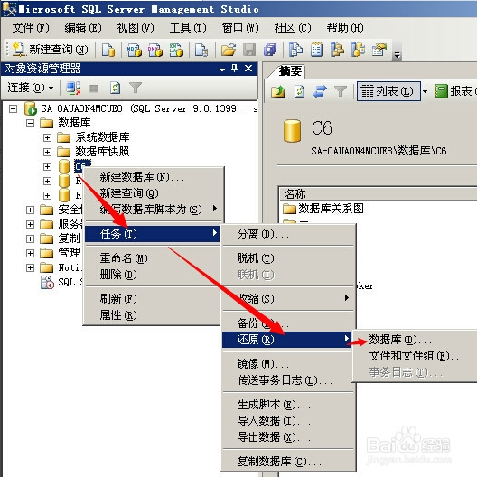 3、雙擊數(shù)據(jù)庫,右擊數(shù)據(jù)庫名,然后鼠標(biāo)移動到任務(wù),點擊備份