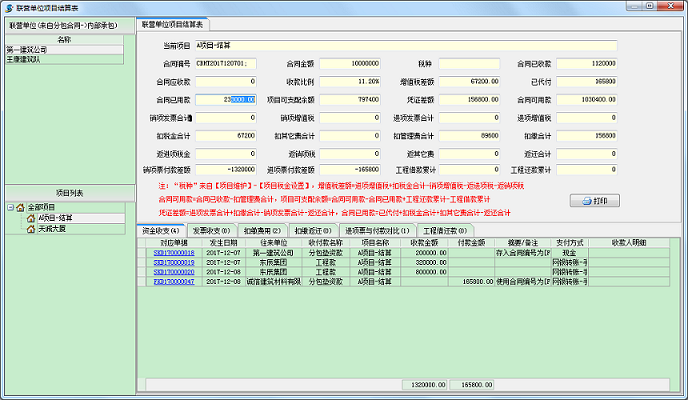 注:該功能來自【分包管理】->【聯(lián)營單位項目結(jié)算表】,用于聯(lián)營單位結(jié)算。