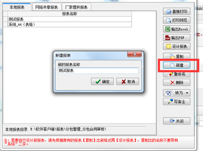 2. 點(diǎn)擊【新建】,輸入報(bào)表的名字后確定,再點(diǎn)擊【設(shè)計(jì)報(bào)表】