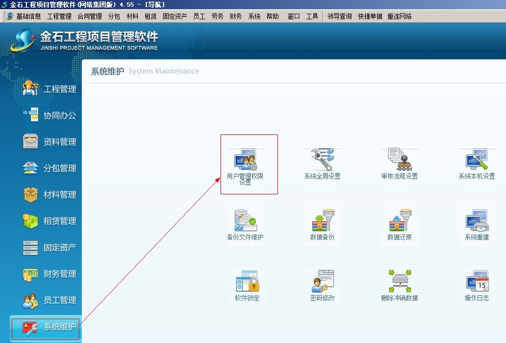 首先用超級用戶登錄工程項目管理軟件客戶端,在系統(tǒng)維護模塊找到審核流程設置。
