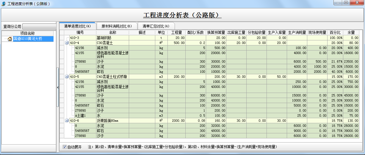 在施工進(jìn)度計劃的基礎(chǔ)上,即(工作部位分解)的基礎(chǔ)上,編制材料需求計劃、建立材料成本維護(hù)、材料加工清單、材料出庫單或調(diào)撥單關(guān)系明細(xì),產(chǎn)生詳細(xì)的進(jìn)度比較和詳細(xì)的歸納比較。