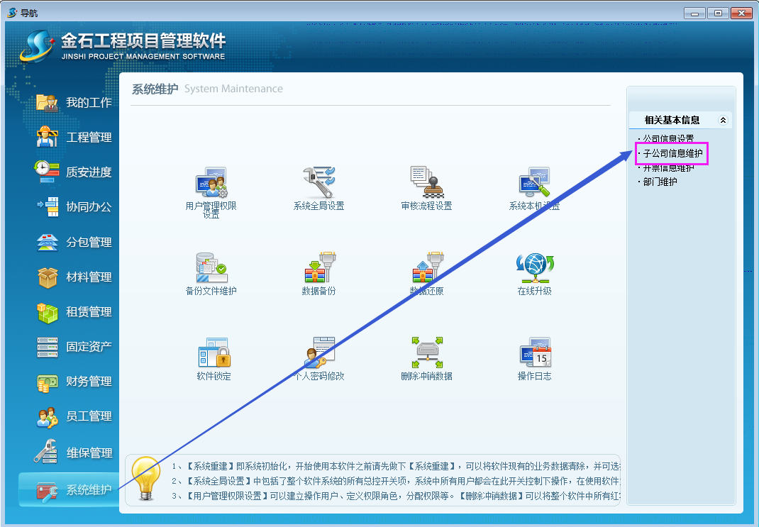 點擊【系統(tǒng)維護】-【子公司信息維護】
