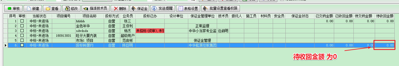 生產(chǎn)立項(xiàng)后,在項(xiàng)目開拓中,我們再次查看投標(biāo)保證金的相關(guān)信息,如下圖所示