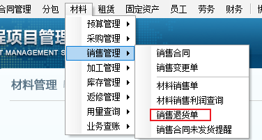 菜單欄【材料】-->【銷售管理】-->【銷售退貨單】