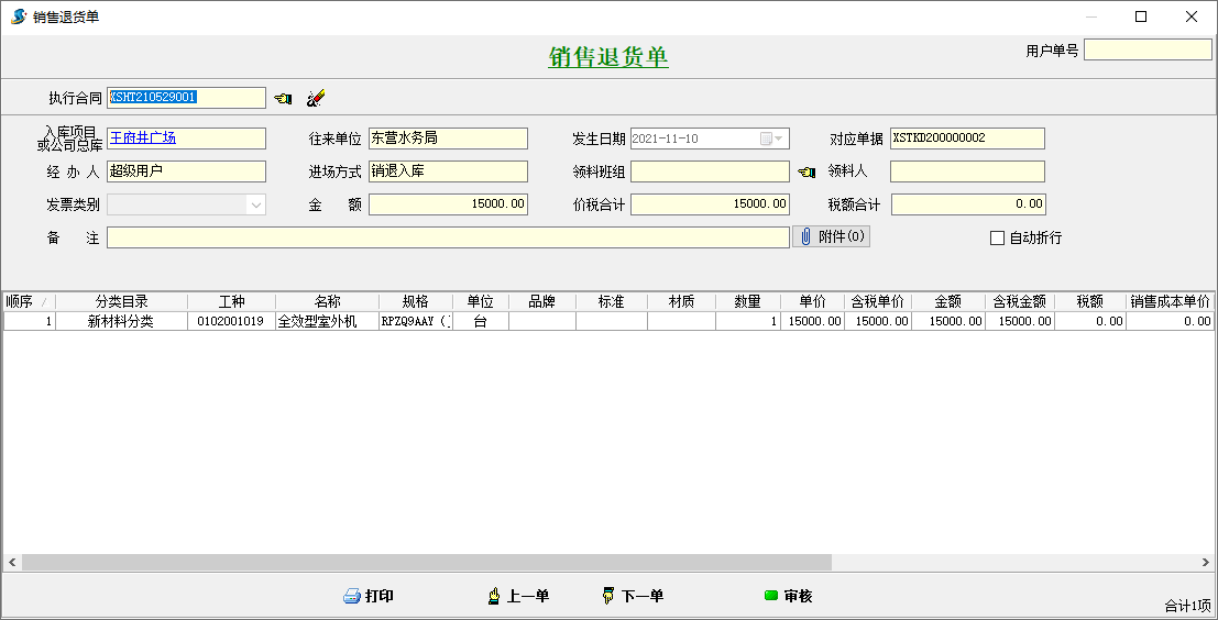 純粹的銷售業(yè)務(wù)中,增加了【銷售退貨單】。目的是為了完善銷售合同的執(zhí)行明細,補足原先銷售業(yè)務(wù)出現(xiàn)退貨時,無法直接在銷售合同【合同內(nèi)容明細】查看退貨的材料明細情況。