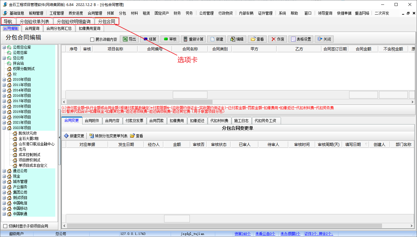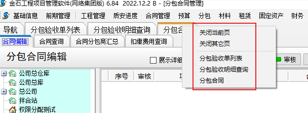 金石工程管理軟件新增導(dǎo)航、所有單據(jù)列表和合同新增選項卡的布局設(shè)置