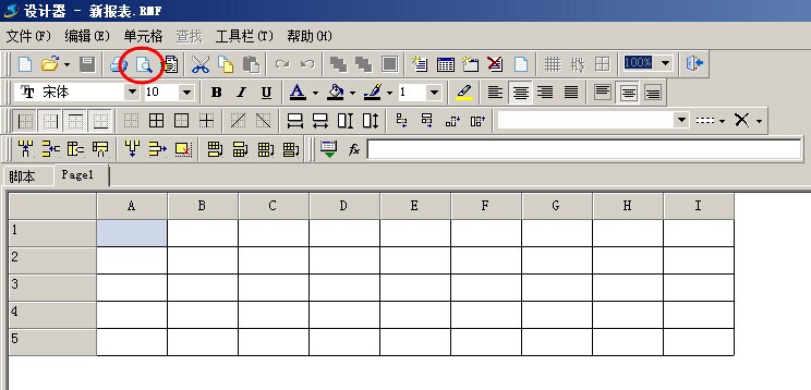 3. 報表設計器與Excel 電子表格基本類似,我們可以通過【打印預覽】按鈕一邊設計一邊進行查看。
