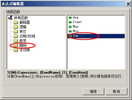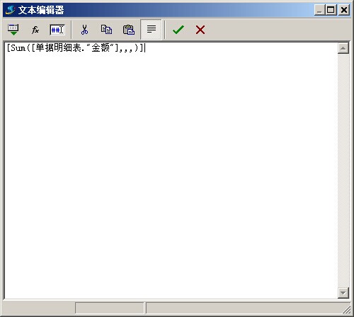 選擇好,之后點擊確定,就會依次保存各個選擇框,最終結果:[Sum([單據(jù)明細表."金額"],,,)]