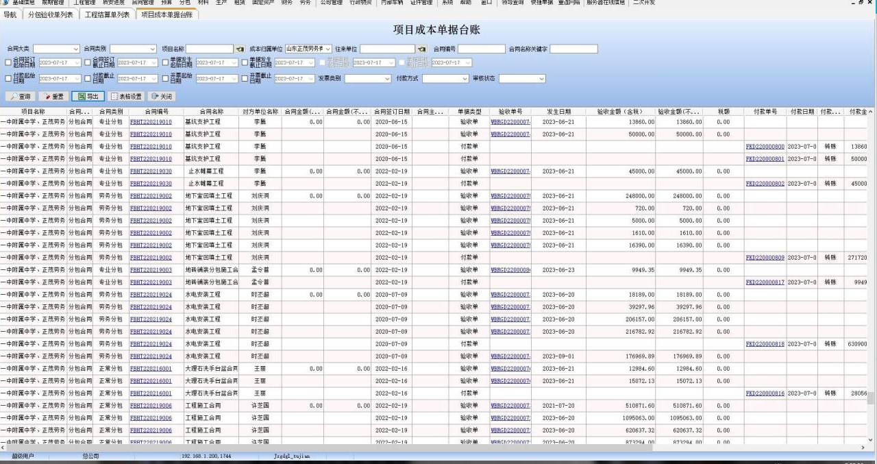 1、項(xiàng)目成本單據(jù)臺賬表金額類字段增加腳標(biāo)匯總。
