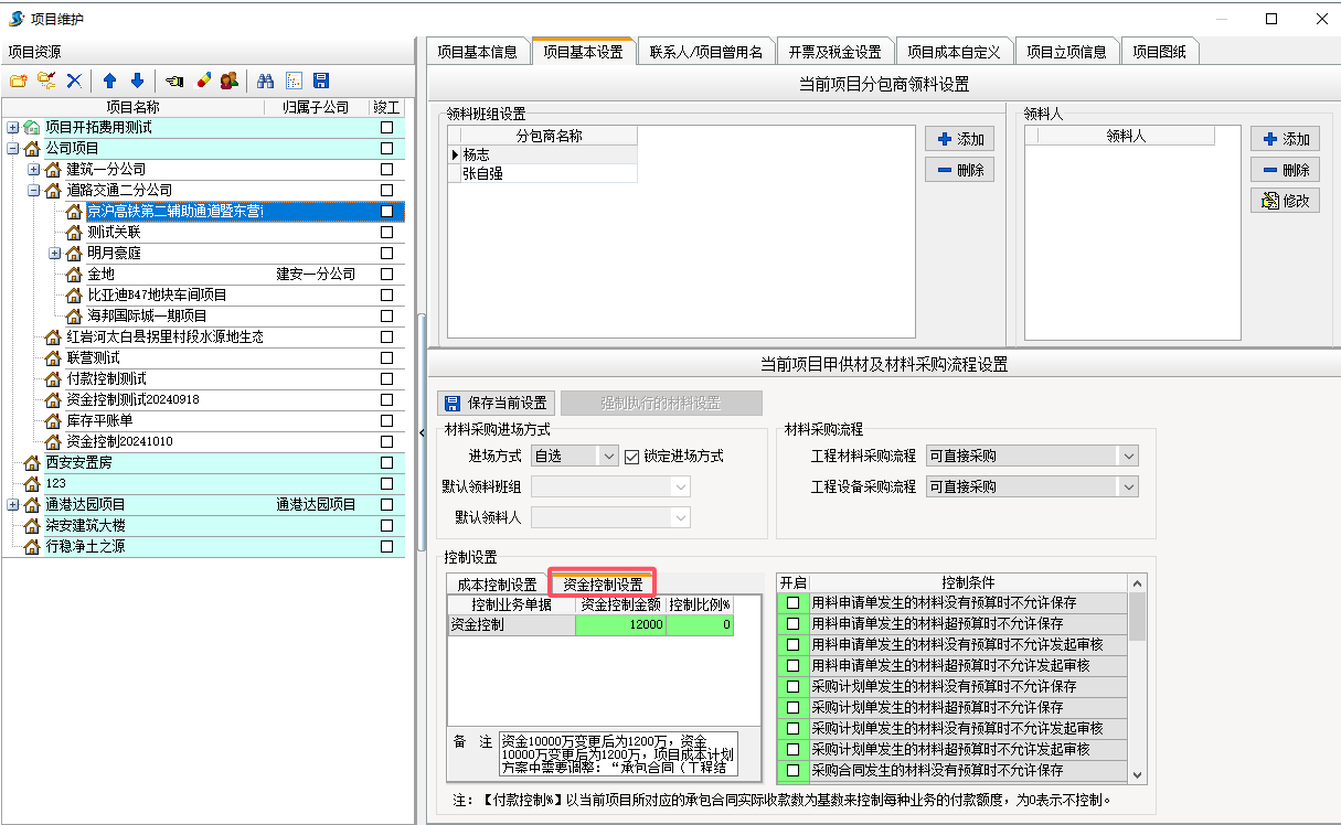 資金控制 :主要應(yīng)用于項(xiàng)目成本相對(duì)滯后,項(xiàng)目預(yù)付款多,通過(guò)設(shè)置 資金控制 控制付款金額和付款比例