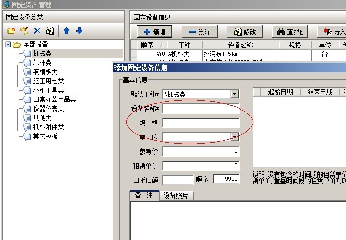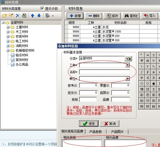首先注意的是,不要把固定設(shè)備期初統(tǒng)計、材料庫存統(tǒng)計與基礎(chǔ)信息中設(shè)備維護(hù)、材料維護(hù)混淆。其中設(shè)備維護(hù)和材料維護(hù)記錄的是設(shè)備、材料的名稱、規(guī)格、品牌、所屬工種、分類等基本信息。如下圖: