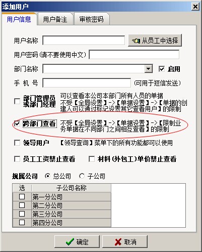 如果,【限制業(yè)務(wù)單據(jù)在不同部門的相互查看】這個開關(guān)開啟,那么與單據(jù)創(chuàng)人部門不同的用戶(多級審核單據(jù)中審核人不受限),就是無法看到該業(yè)務(wù)單據(jù)。判斷是否與單據(jù)創(chuàng)建人部門相同,是看用戶列表中的部門項。如下圖: