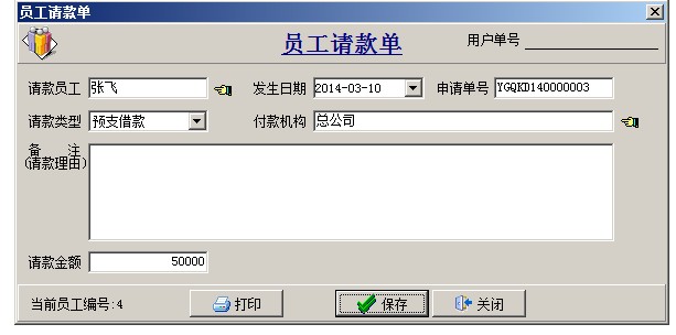員工請(qǐng)款單可以開啟使用多級(jí)審核,審核之后執(zhí)行付款,生成員工借款單,保存