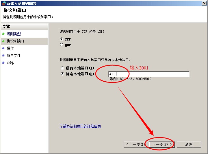 點入站規(guī)則----新建規(guī)則,在彈出的新建入站規(guī)則向?qū)Т翱谥羞x端口項,點下一步