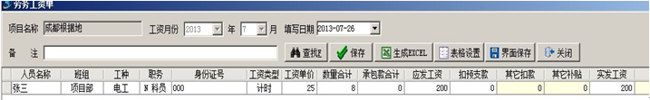 勞務(wù)工資表是根據(jù)勞務(wù)考勤表生成,每個(gè)項(xiàng)目的勞務(wù)考勤要單獨(dú)錄入,每個(gè)項(xiàng)目每個(gè)月份生成一張勞務(wù)工資表。記錄勞務(wù)考勤表時(shí)間段可選擇三種方式:按日、按月、自定義(1個(gè)月之內(nèi))。