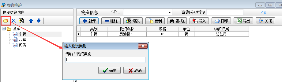 備注:物資歸屬一定要設(shè)置好,方便于總公司和分公司分別管理自己的物資。