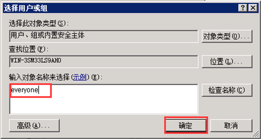 第二步,在彈出的對話框中點擊“安全”,并點擊“編輯”,輸入對象名為“Everyone”。如圖: