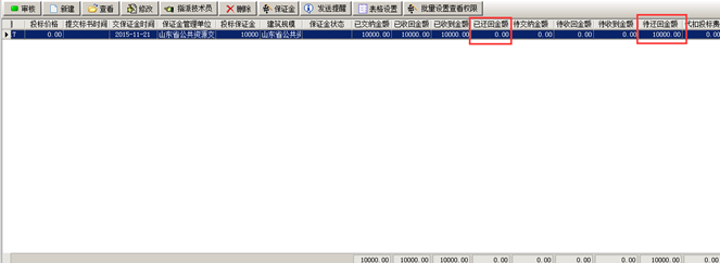 單據創(chuàng)建完成,系統(tǒng)在“還回金額”中扣除【代扣投標費】。如圖: