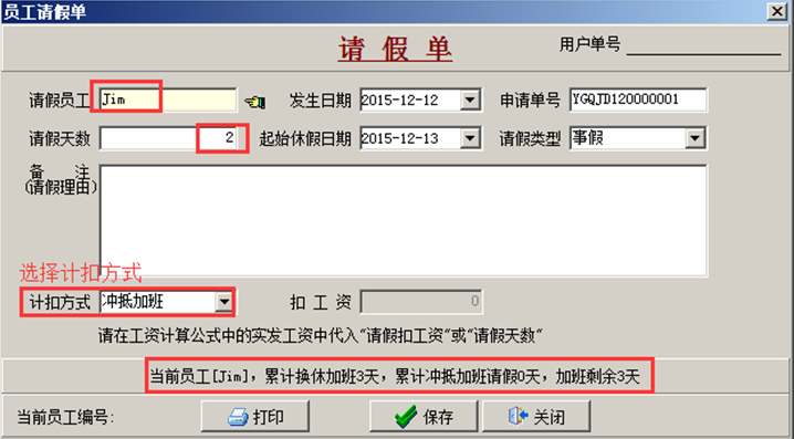 工程管理軟件中員工管理中員工加班、請(qǐng)假抵扣的操作方法