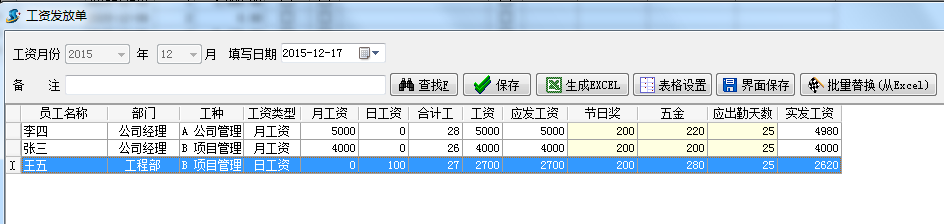 工程管理軟件在生成員工工資表之前將當(dāng)月的考勤單據(jù)以及所有的影響到員工工資的單據(jù)審核完成(工資預(yù)支單、按月預(yù)支單、員工罰款單、員工請(qǐng)假單、員工加班單、工資項(xiàng)目定義、個(gè)人所得稅)。