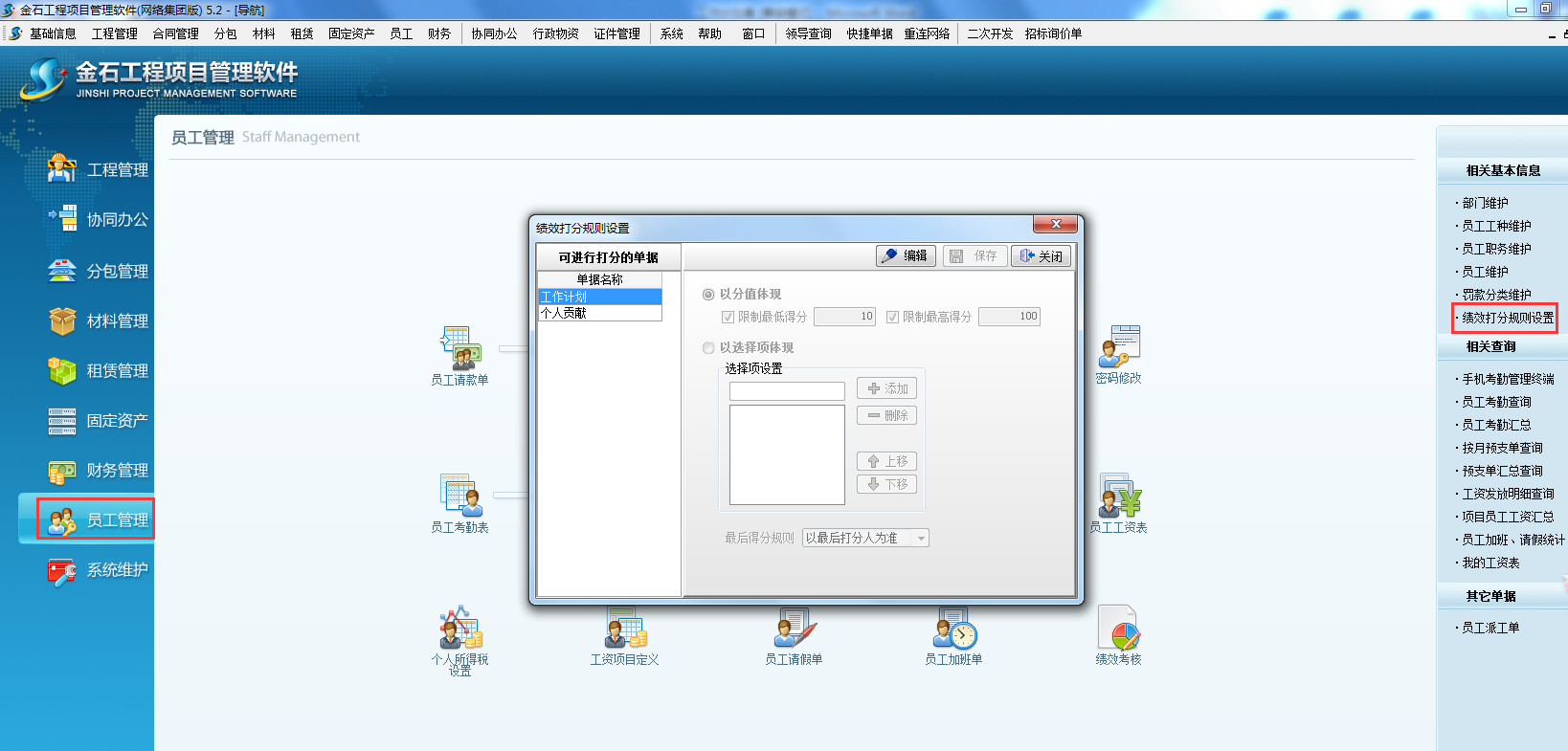 打開項目管理軟件【員工管理】-【績效打分規(guī)則設置】如下圖: