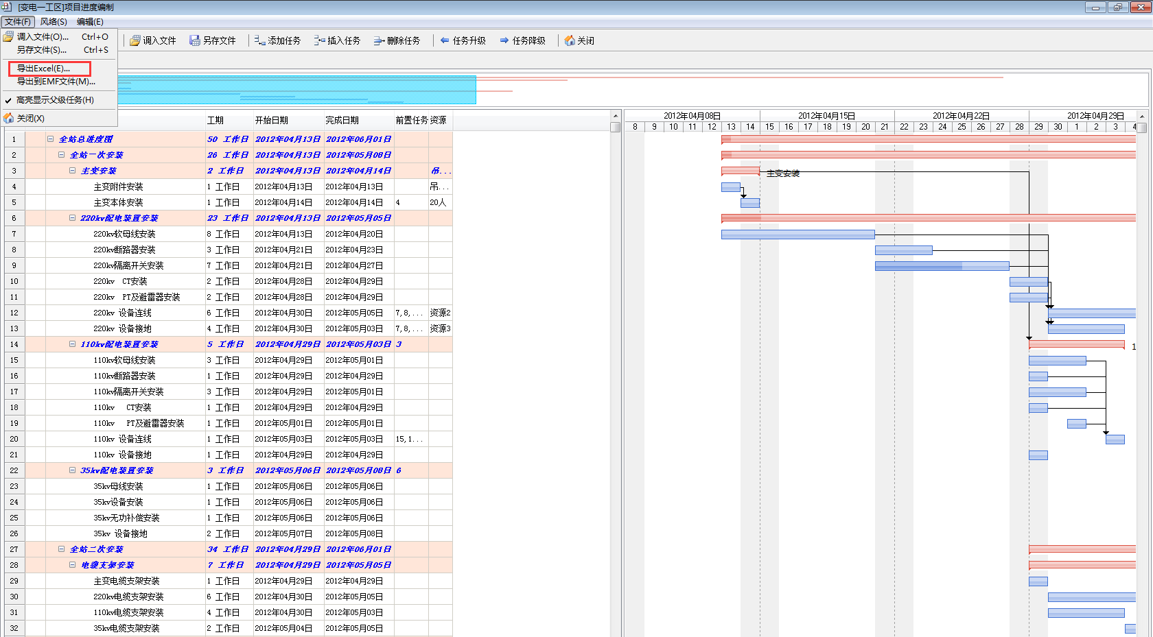 1. 來(lái)自Project軟件導(dǎo)出的excel導(dǎo)入方法。