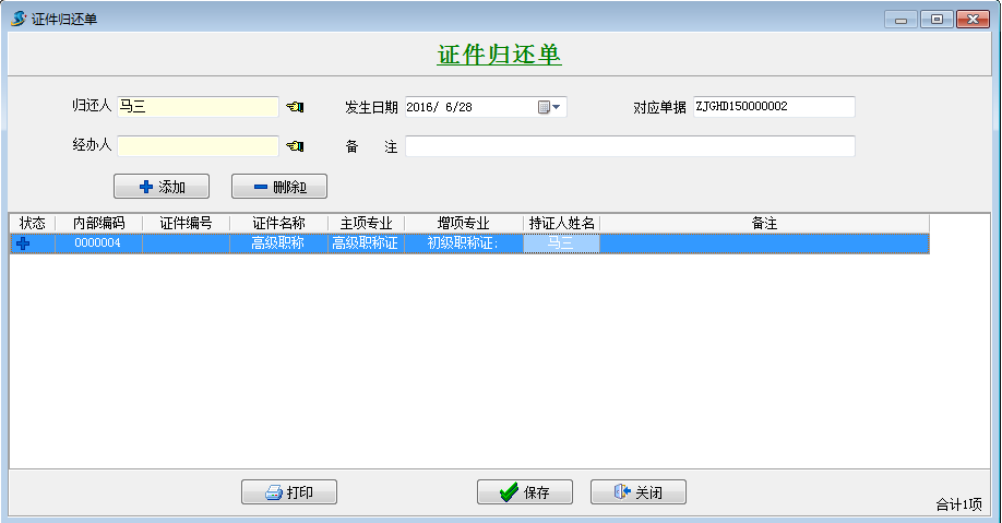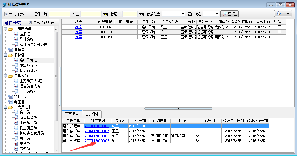 如下圖所示:證件管理的所屬部門已經(jīng)由[項目部]變更為我們剛剛修改的[市場部]了