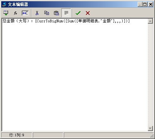 選擇好,之后點擊確定,就會依次保存各個選擇框,最終結果:[Sum([單據(jù)明細表."金額"],,,)]