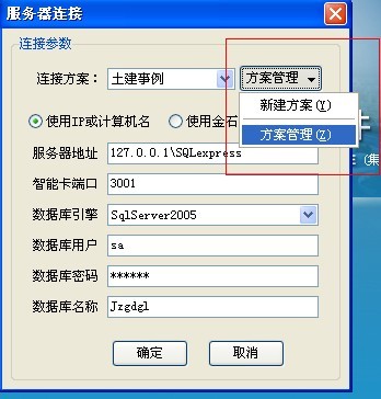 在彈出的窗口中填寫好:服務(wù)器ip地址、智能卡端口、數(shù)據(jù)引擎、數(shù)據(jù)庫用戶、數(shù)據(jù)庫密碼、數(shù)據(jù)庫名稱。