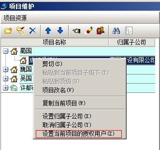 C:項目授權(quán)判斷,是指判斷該用戶是否有項目授權(quán),在系統(tǒng)維護(hù)模塊中【用戶管理權(quán)限設(shè)置】和項目維護(hù)中都可以進(jìn)行設(shè)置用戶項目授權(quán)。設(shè)置方法如下圖: